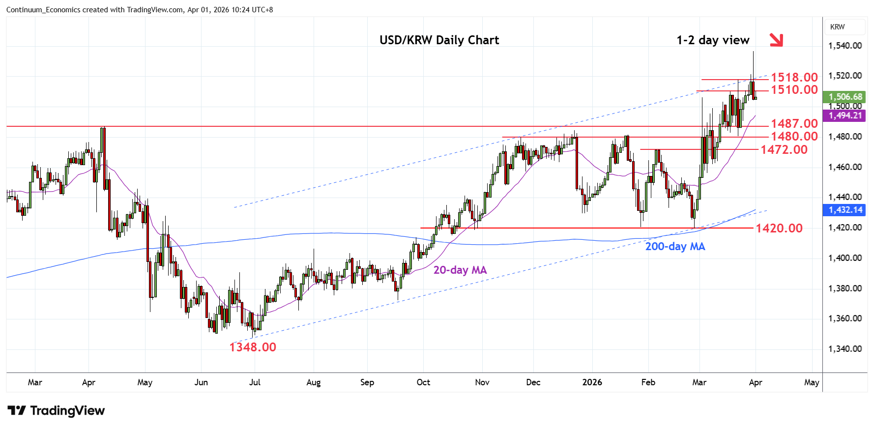 Chart USD/KRW Update: Reversal from 1537.00 spike high