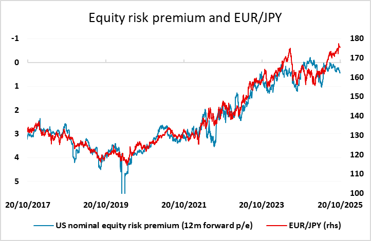 There have been some hawkish BoJ comments in recent days, and we would not rule out an October rate hike at the meeting on the 29th, even though this is only 20% priced in, so caution is required from JPY bears. Certainly, traditional relationships with yield spreads and risk premia suggest there is substantial upside risk for the JPY.