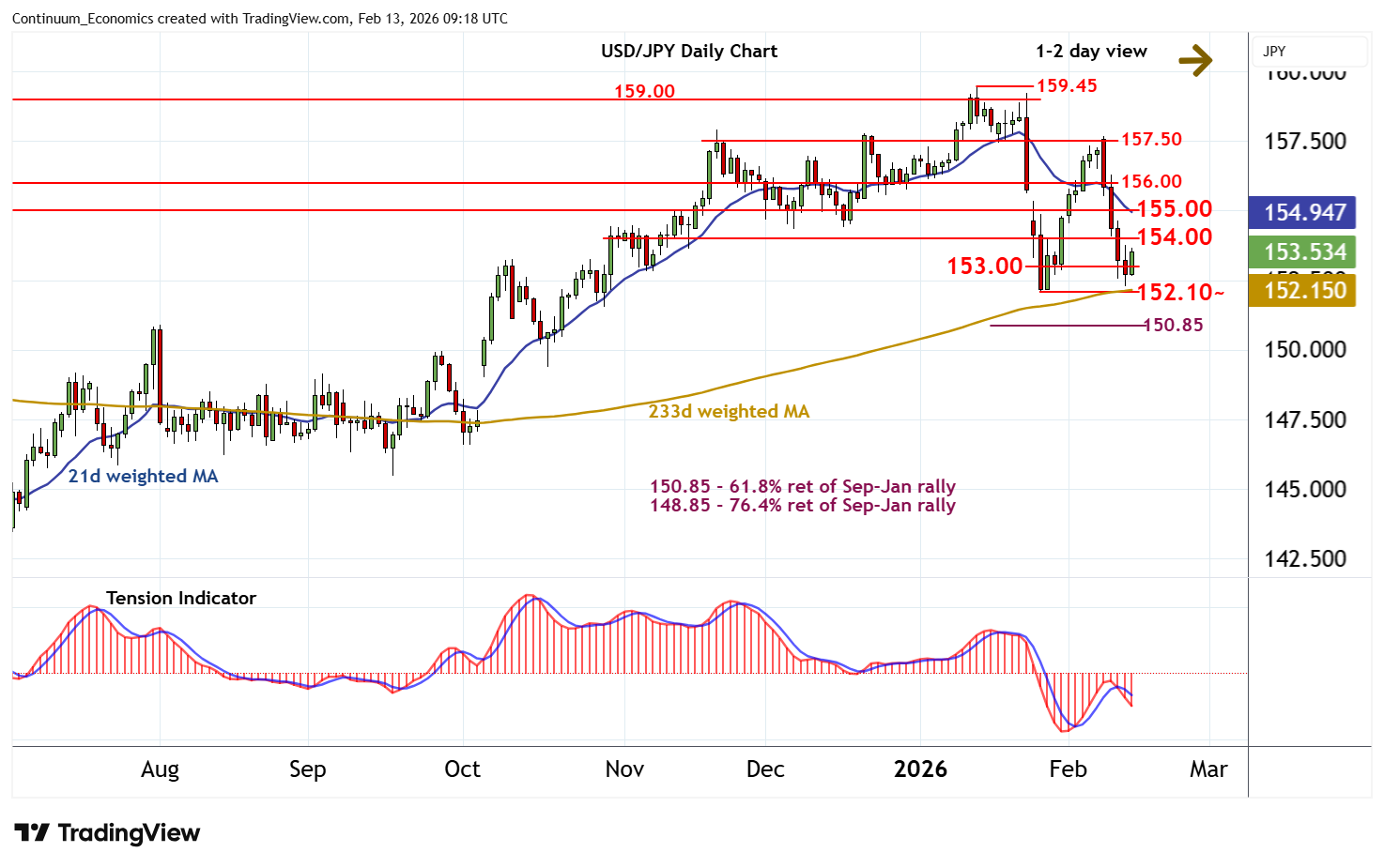 | R3 | 156.00 | * | congestion | S2 | 152.10~ | ** | 27 Jan YTD low | |