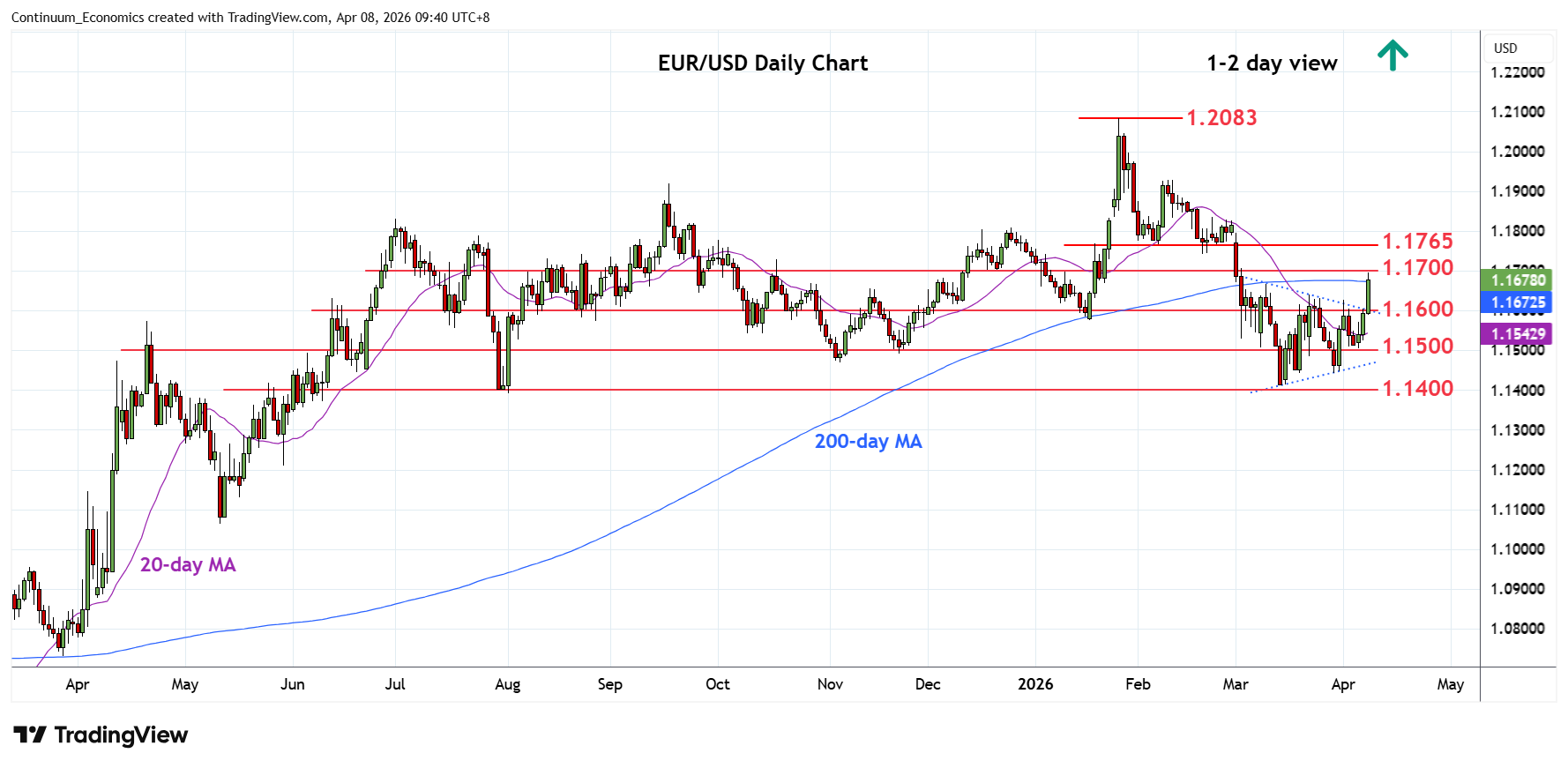 Chart EUR/USD Update: Consolidating below 1.1700, room for higher