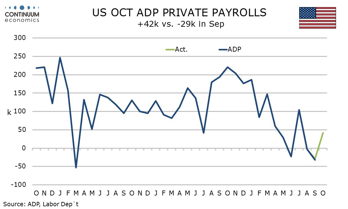 The latest weekly ADP employment report, showing an average job loss per week of 11,250 in the 4 weeks to October 25, is a significant contrast to the average increase of 14,250k seen in the 4 weeks to October 11.
