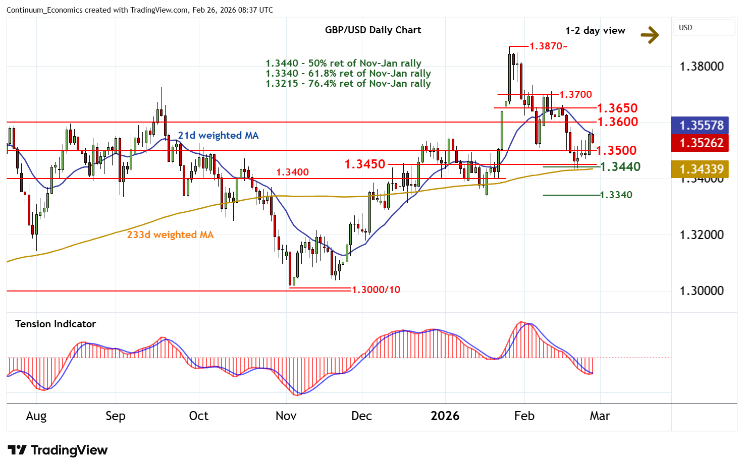 | R4 | 1.3733 | * | 4 Feb (w) high | S1 | 1.3500 | ** | congestion | |