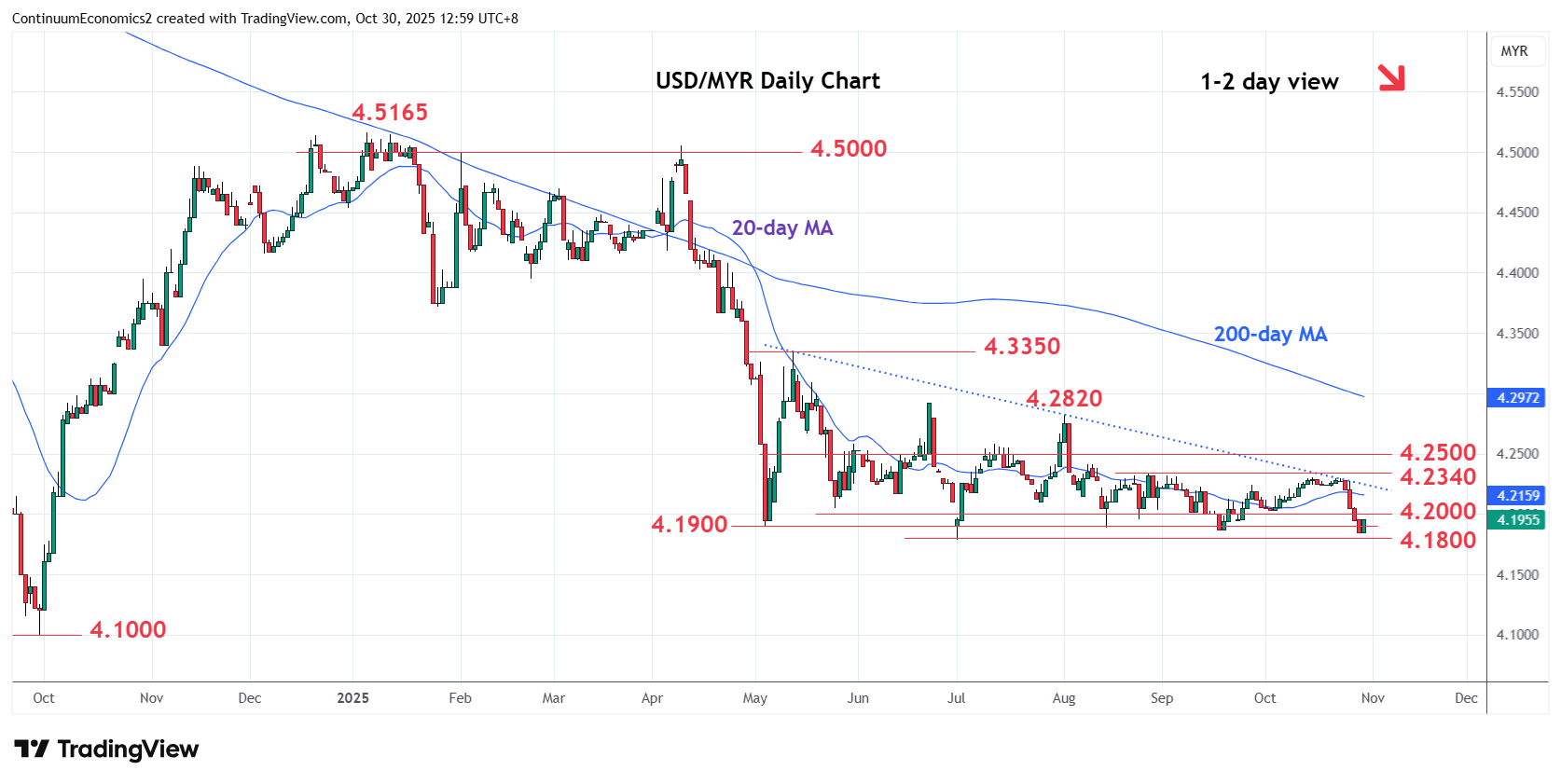 Chart USD/MYR Update: Consolidating test of 4.1900/4.1800 lows