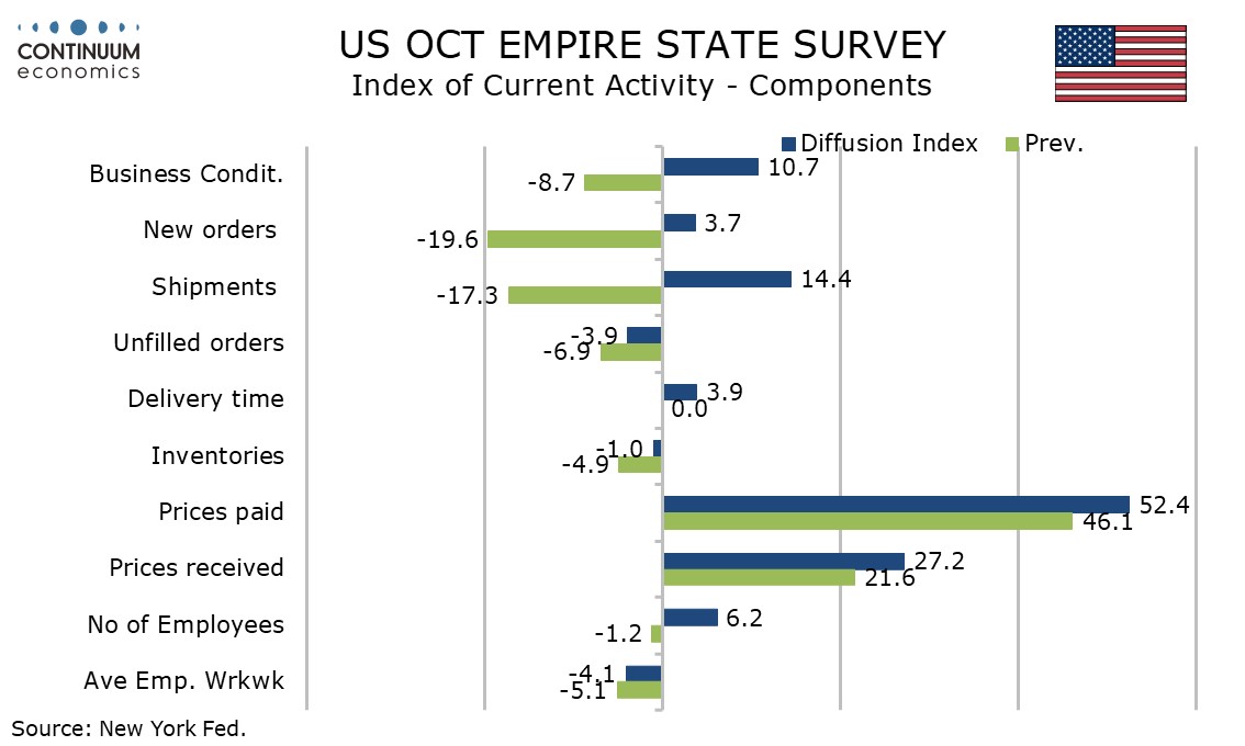 U.S. October Empire State Manufacturing Survey - Activity rebounds, prices stronger