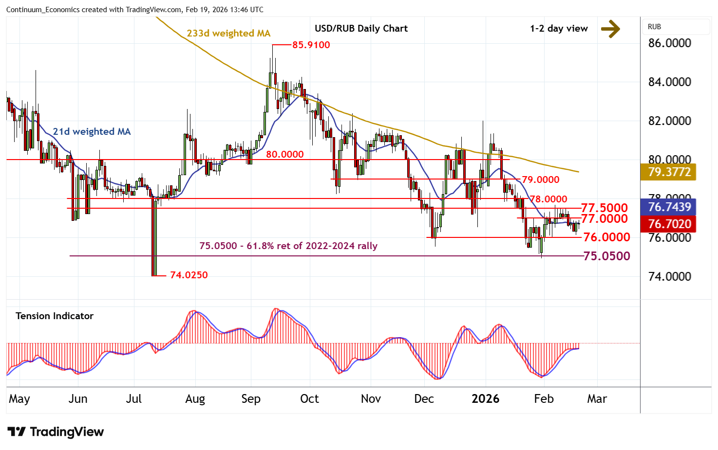 Cautious trade, as prices extend consolidation within the 76.0000 - 77.0000 range