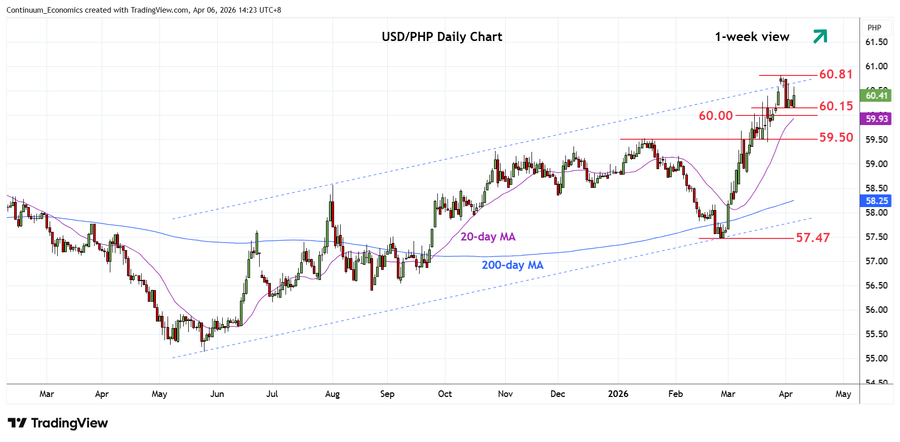 Chart USD/PHP Updates: Lower in consolidation from 60.810 historic high