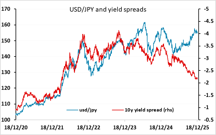 US CPI for November has come in much weaker than expected at 2.7% y/y, 2.6% core, against a consensus expectation of 3.1% and 3.0% respectively. There is no split announced between October and November, but lower than expected outcome has increased market expectations of further Fed easing, undermining the USD and helping to boost equity markets. The USD decline has been quite modest, with yield spreads playing a fairly minor role in FX trading of late. Typically, the JPY would normally benefit most from lower US yields, but positive equity responses limit the scope for JPY gains, and JPY crosses are little changed with the market focus on tomorrow’s BoJ decision.