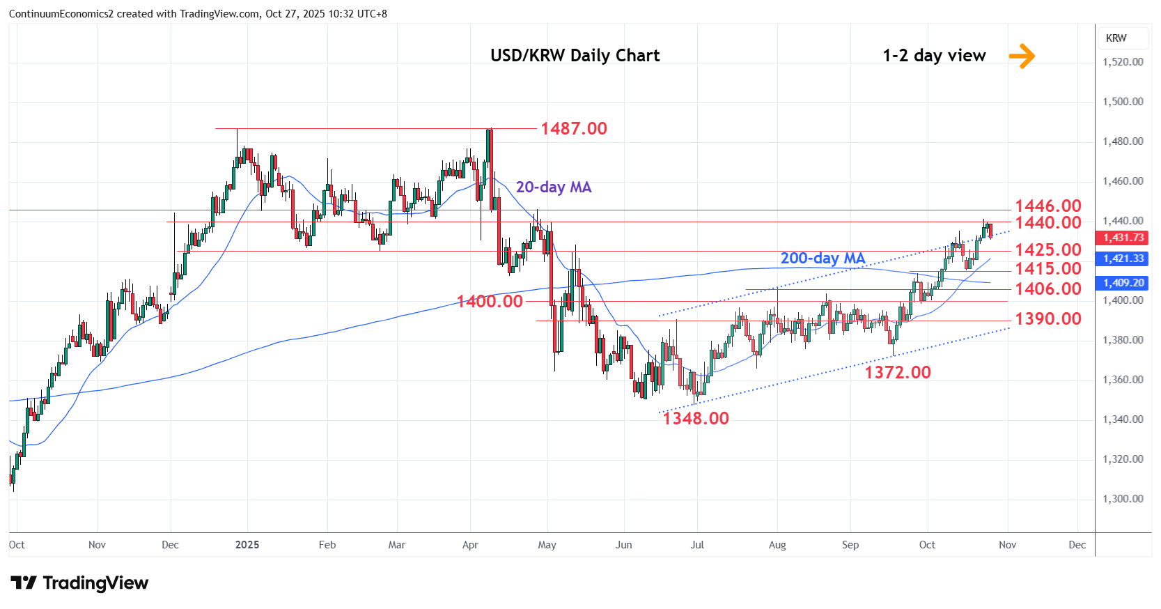 Chart USD/KRW Update: Lower in consolidation from 1440.00
