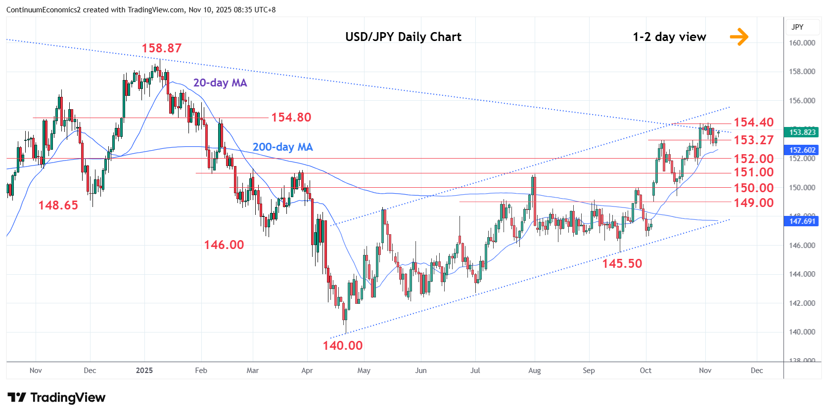 Elsewhere, the JPY has weakened overnight helped by a more risk positive tone due to reports that the US is coming closer to ending the government shutdown, with the AUD outperforming. The JPY also suffered a little from comments from Takuji Aida, and economic adviser to PM Takaichi, who said it would be risky for the BoJ to rise rates in December. Indications from Takaichi of a relaxation of fiscal policy rules and BoJ minutes that suggested a December hike will be difficult due to the lack of wage inflation also contributed to JPY weakness. Both USD/JPY and EUR/JPY are approaching big technical levels at 154.40 and 178.10 respectively.