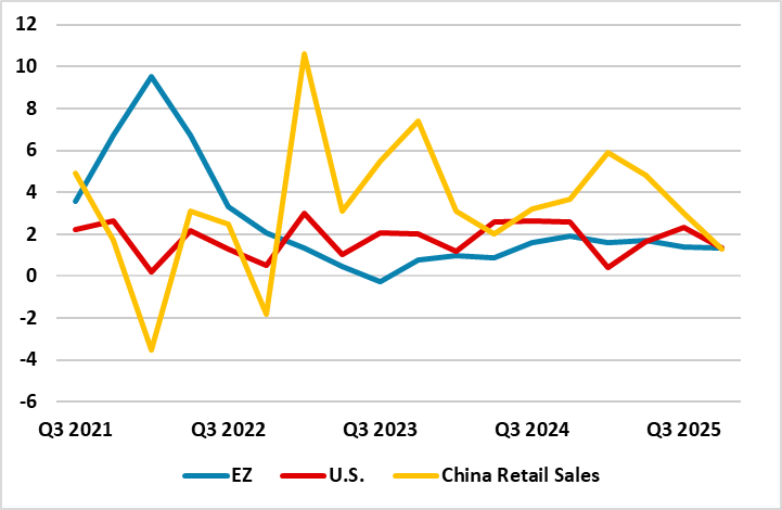 Figure 5: U.S./EZ Real Consumption and China Nominal Retail Sales (% Yr/Yr)