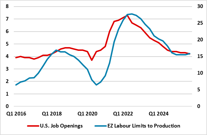 Secondly, labour markets are not tight in contrast to 2022 (Figure 6) and were normal or soft entering 2026. Crucially we feel that this restricts wage setting and reduces 2nd round effects on the 4-8 week war scenario. Combined with the extra budget for essential oil and natural gas, this can hurt consumption and produce a slight to modest GDP hit.