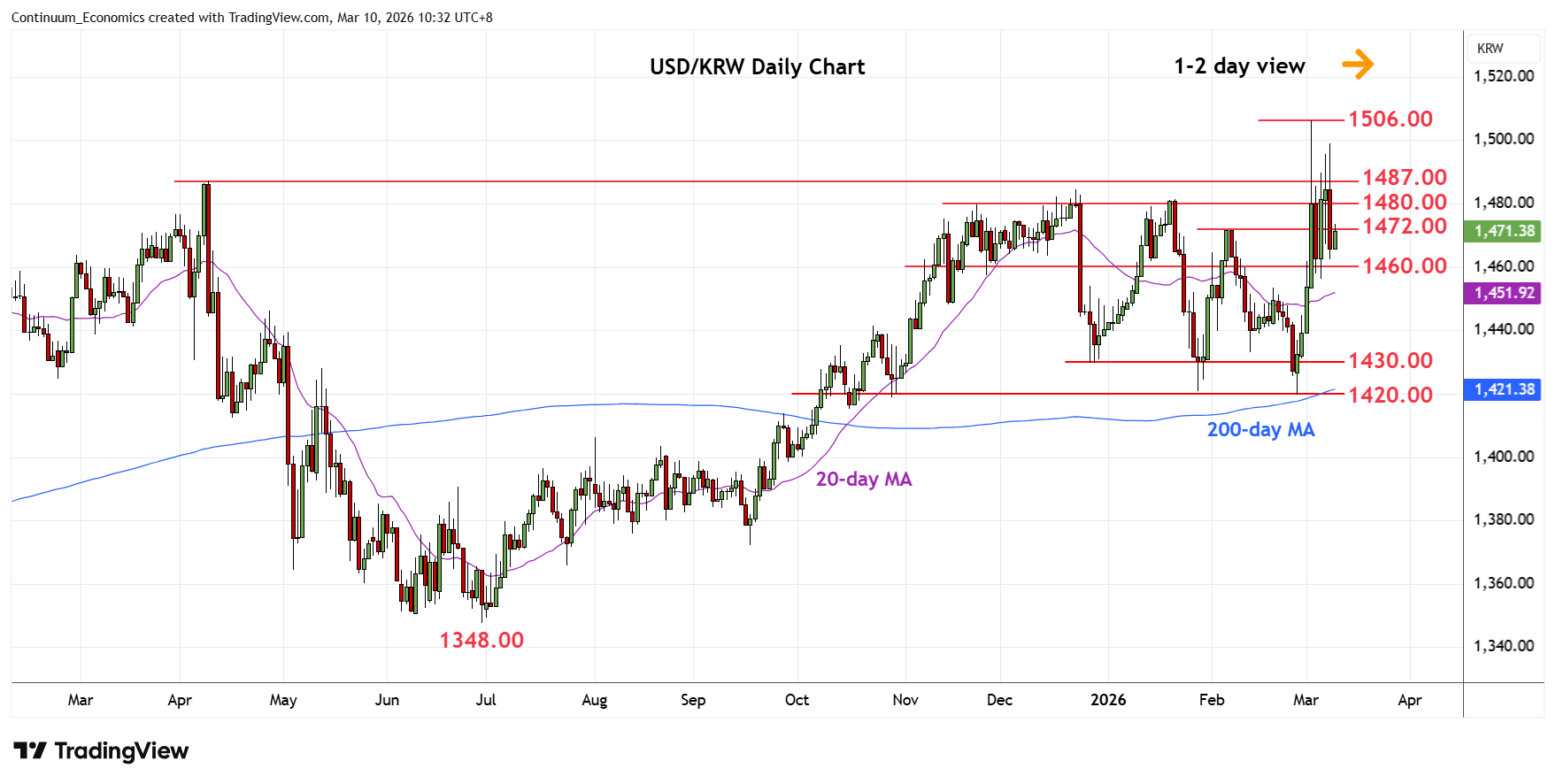 Chart USD/KRW Update: Back in choppy trade within 1487.00/1460.00 area
