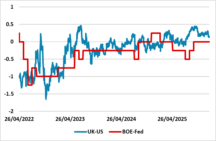 • February 5 for hints on timing. The February 5 MPC meeting is unlikely to see another cut, but will add to guidance on future rate prospects. We see the four hawks eventually softening their view and the five cutters becoming more worried, which will combine to deliver three 25bps cut from the BOE this year. March is possible, but the April 30 meeting is key as the monetary policy report is also delivered. We will also be close to the drop in headline CPI in April as base effects drop out. Timing does depend on when the hawks become more forward looking and change view, which could be gradual or abrupt. However, we are confident that this will happen and deliver three 25bps cuts in 2026. We can see 2yr yields coming down to 3.25% into H2 2026, which is the most attractive short-end of the big DM countries.