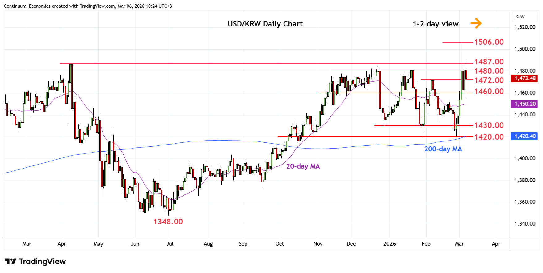 Chart USD/KRW Update: Settled back within 148.00/1460.00 range