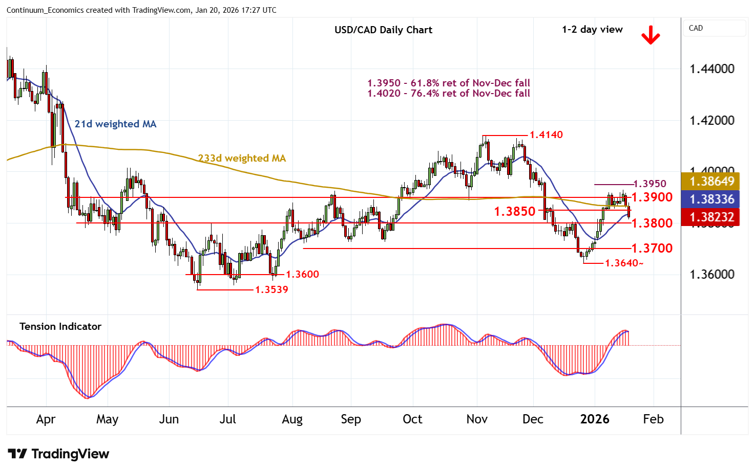 | R3 | 1.3950 | ** | 61.8% ret of Nov-Dec fall | S2 | 1.3700 | * | congestion | |
