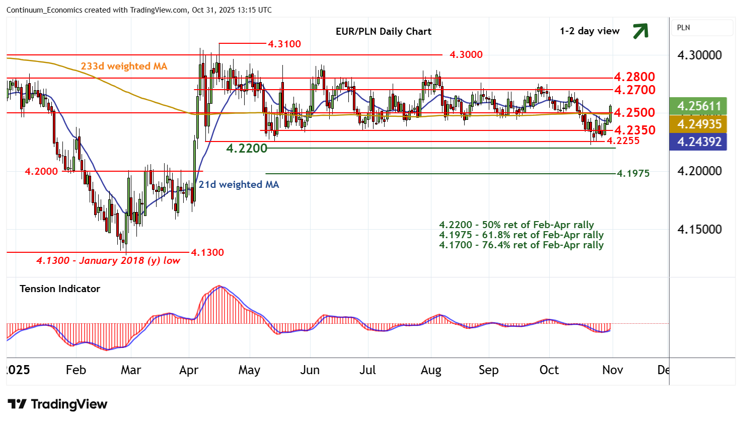 12:50 GMT - Cautious trade is giving way to anticipated gains, with the break above 4.2500 currently trading around 4.2560. Daily readings are rising, highlighting room for a test of resistance at 4.2700. But negative weekly charts are expected to limit any further gains in renewed selling interest towards congestion around 4.2800. Meanwhile, a close back below congestion support at 4.2500, not yet seen, will turn sentiment neutral and prompt consolidation above 4.2350.