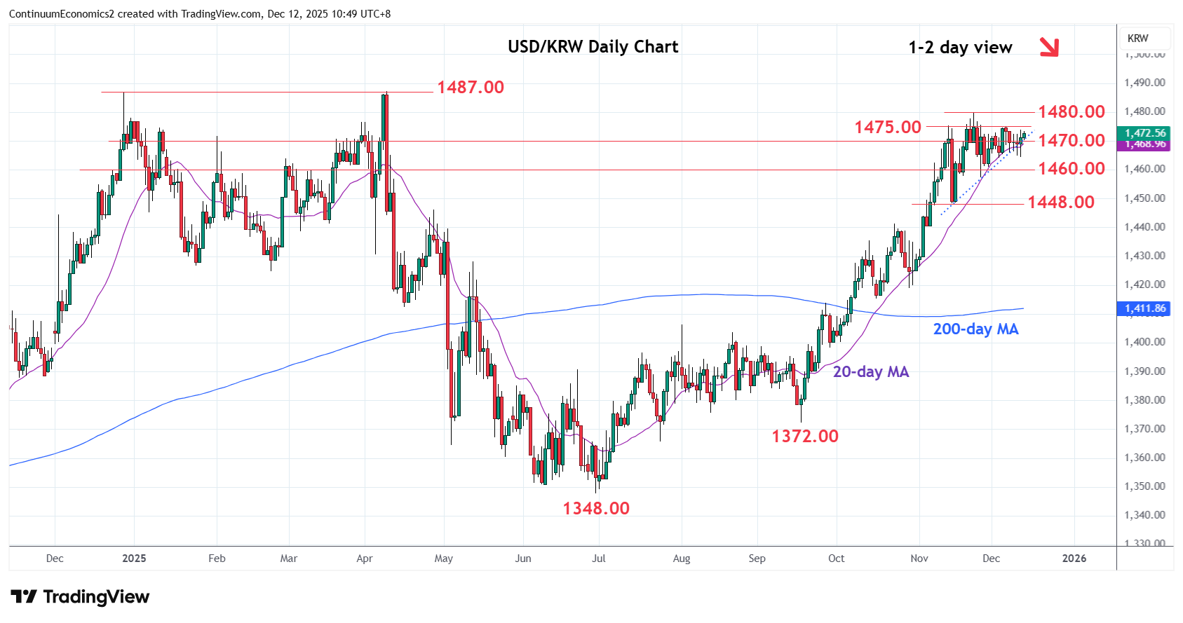 Chart USD/KRW Update: Extend choppy trade below 1475.00 resistance