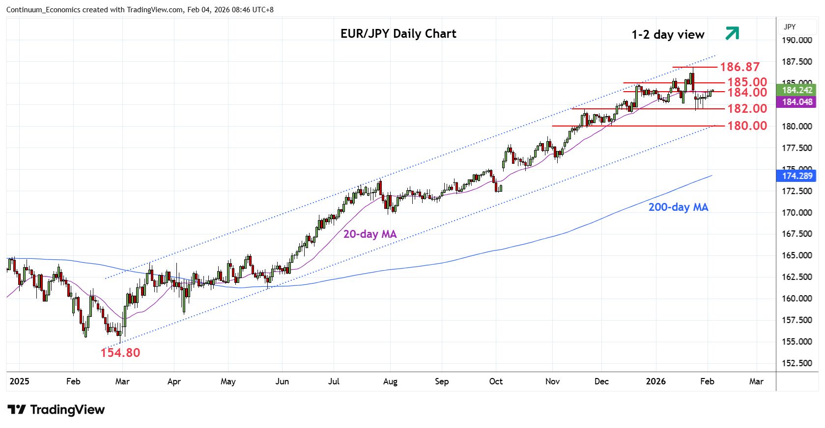 Break above resistance at the 184.00/10 area see prices extending bounce from the 181.78 January low