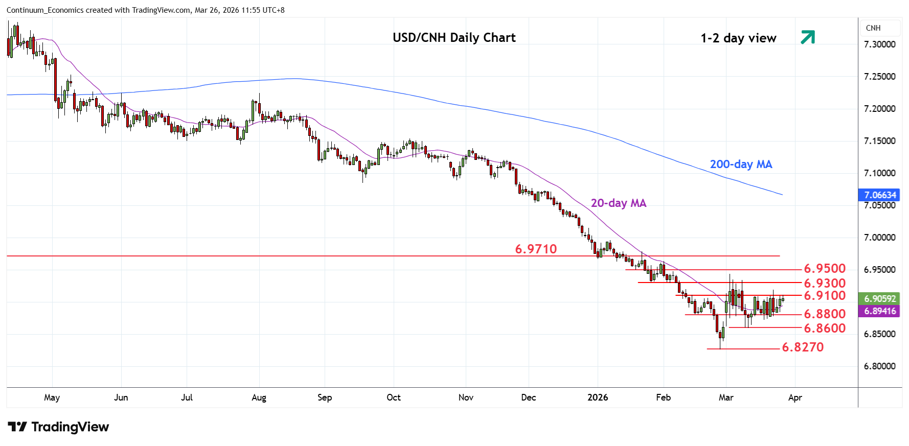 Chart USD/CNH Update: Pressuring 6.9100 range high