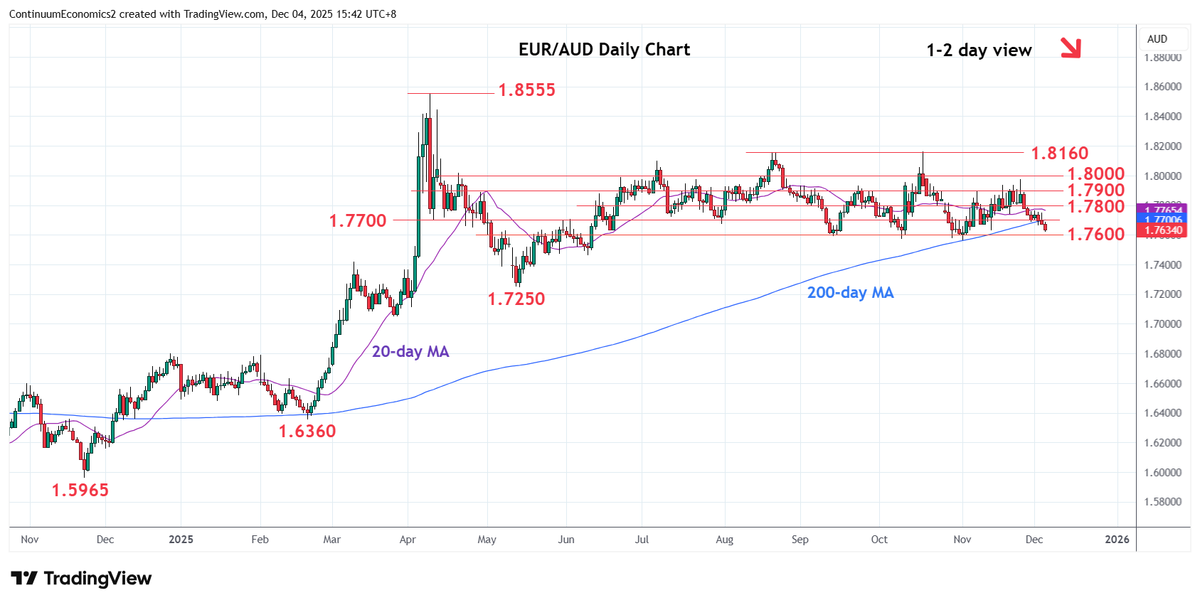 Chart EUR/AUD Update: Under pressure, 1.7600/1.7565 lows at risk