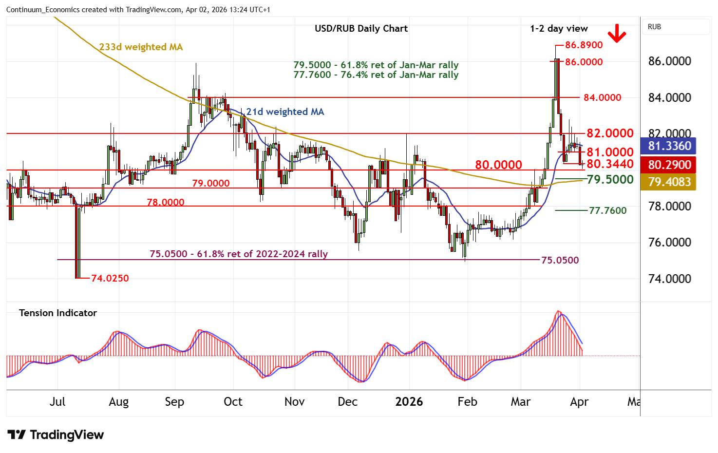 | R4 | 86.0000 | * | congestion | S1 | 80.3440 | * | 24 Mar (m) low | |
