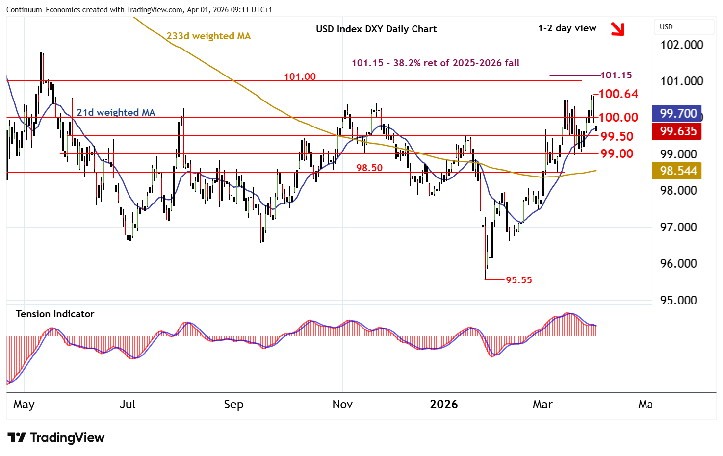 | R2 | 100.64 | ** | 31 Mar YTD high | S3 | 98.88 | 23 Mar (w) low | ||