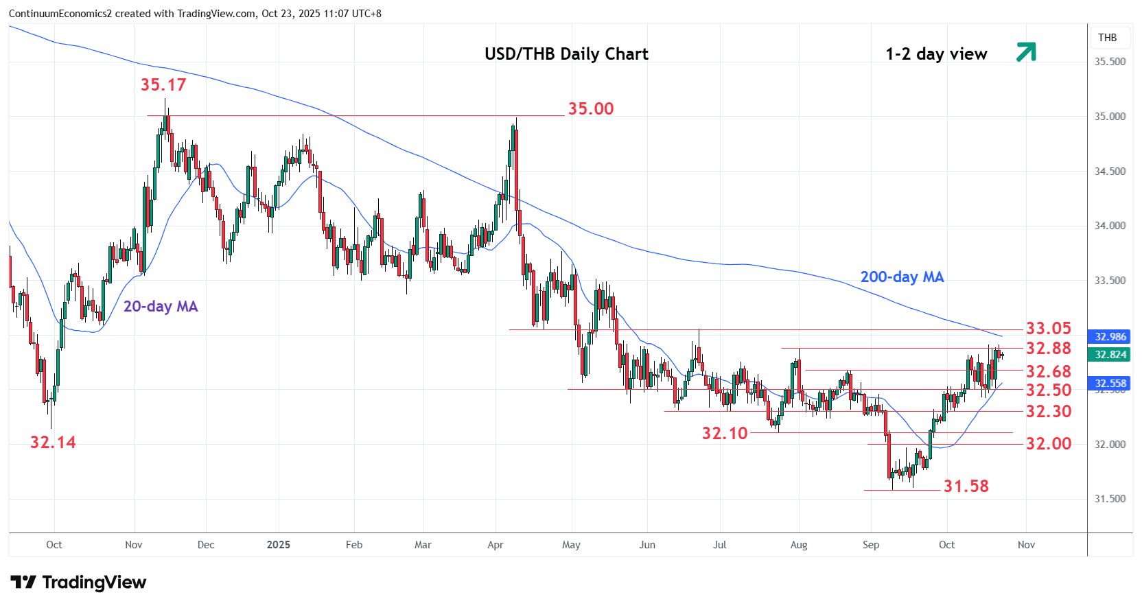 03:00 GMT - Choppy trade above the 32.50 support see prices extending gains to reach resistance at the 32.88, August high. Break here will further extend gains from the 31.58 low and retrace losses from the April high to target the 33.00/05, congestion and June high. Would expect reaction here though a later break cannot be ruled out. Clearance will see room to 33.29, 50% Fibonacci level. Meanwhile, support is raised to the 32.68 high of 22 August and extending to 32.50 congestion which is expected to underpin. Below this will return focus to the downside for retest of 32.30/32.10 area.