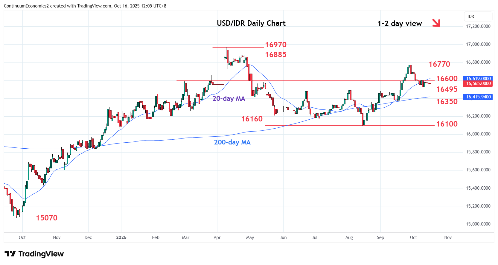 Chart USD/IDR Updates: Consoldating above 16525 low