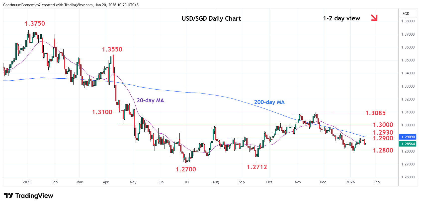 Chart USD/SGD Update: Leaning lower from test of 1.2900 resistance