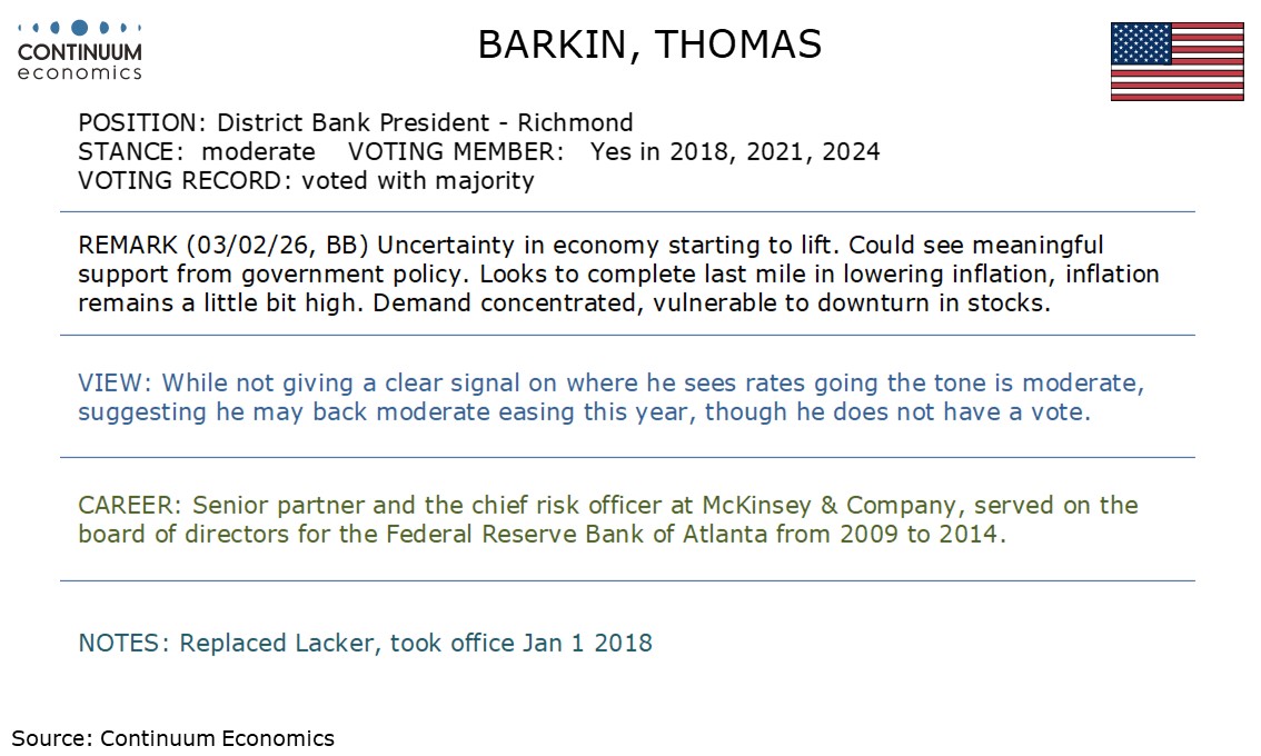 Fed's Barkin's tone is moderate, hinting at openness towards easing, if not urgency.