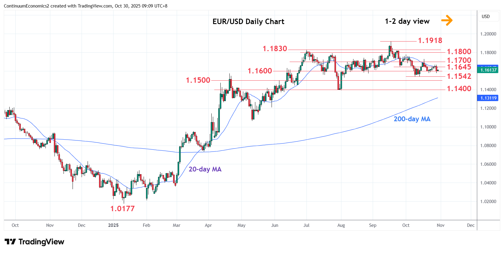 French preliminary Q3 GDP has come in much stronger than expected at 0.5% q/q, driven by exports, which rose 2.2% q/q, while imports fell 0.4%. Whether this is due to intra- or extra-Eurozone trade is unclear at this stage. If the former, there won’t be an impact on Eurozone GDP, if the latter, the numbers are clearly positive for Eurozone GDP, and it is reasonable to assume that some of the gain was due to ex-EZ, so the numbers must be seen as positive. In any case, domestic demand added 0.3% to GDP, which itself is more than the 0.2% total gain expected, so the data has to be seen as positive. We get the Italian, German and total Eurozone data over the rest of the morning. Thus far, there has been no impact on the EUR, which remained broadly steady overnight after the post-Fed dip, but the data looks like being broadly supportive.