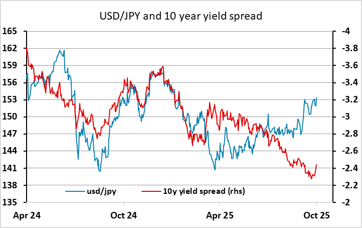 Overnight the Fed sounded a little more hawkish than expected and the lack of certainty on a December hike has pushed up US yields and the USD. Gains have been most notable against the JPY, which fell back after the BoJ left rates unchanged and BoJ governor Ueda sounded as if he was in no hurry to hike in December either. The probability of a December hike form the BoJ is now priced as around 25% from near 50% before the BoJ. Equities showed no clear directional reaction to the quarterly results from Microsoft, Alphabet and Meta, which produced mixed responses in their individual share prices. But the rise in US yields post-Fed means there has been a decline in implied equity risk premia, so valuations look a little more extended than before. There is optimism on the Trump/Xi talks, although no clear-cut result as yet despite some upbeat comments from Trump. Trump said he had agreed to trim tariffs on China in exchange for Beijing resuming U.S. soybean purchases, keeping rare earths exports flowing and cracking down on the illicit trade of fentanyl. But details were scant.