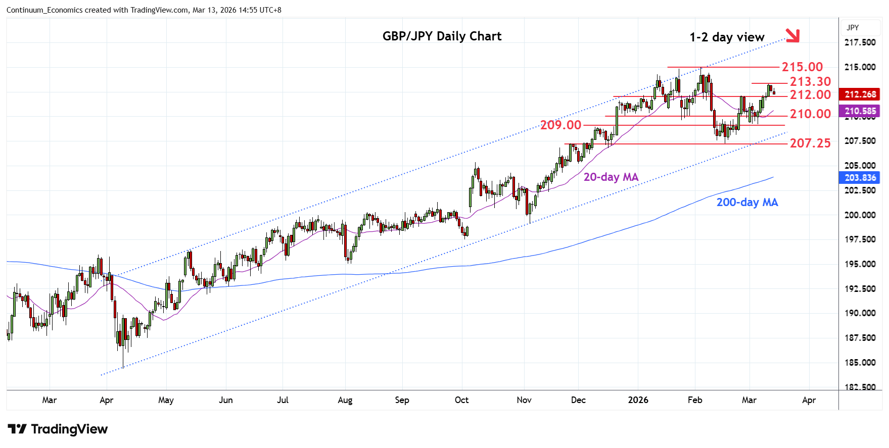 Chart GBP/JPY Update: Lower in range from 213.30 high