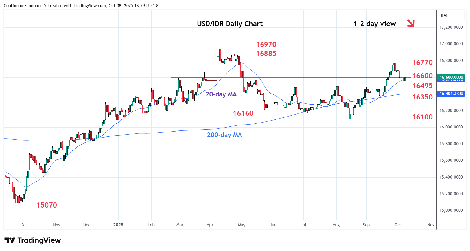 05:45 GMT - Turned up from the 16540 low to consolidate losses from the 16770 high. However, the downside remains vulnerable and break here will see room for deeper pullback to retrace gains from the 16100 low of August. Lower will turn focus to strong support at the 16495, June-August range highs. Break here will fade the upside pressure and see room for extension to the 16400/16350 area. Meanwhile, resistance is lowered to 16700/16730 area which is now expected to cap and sustain pullback from the 16770 high.