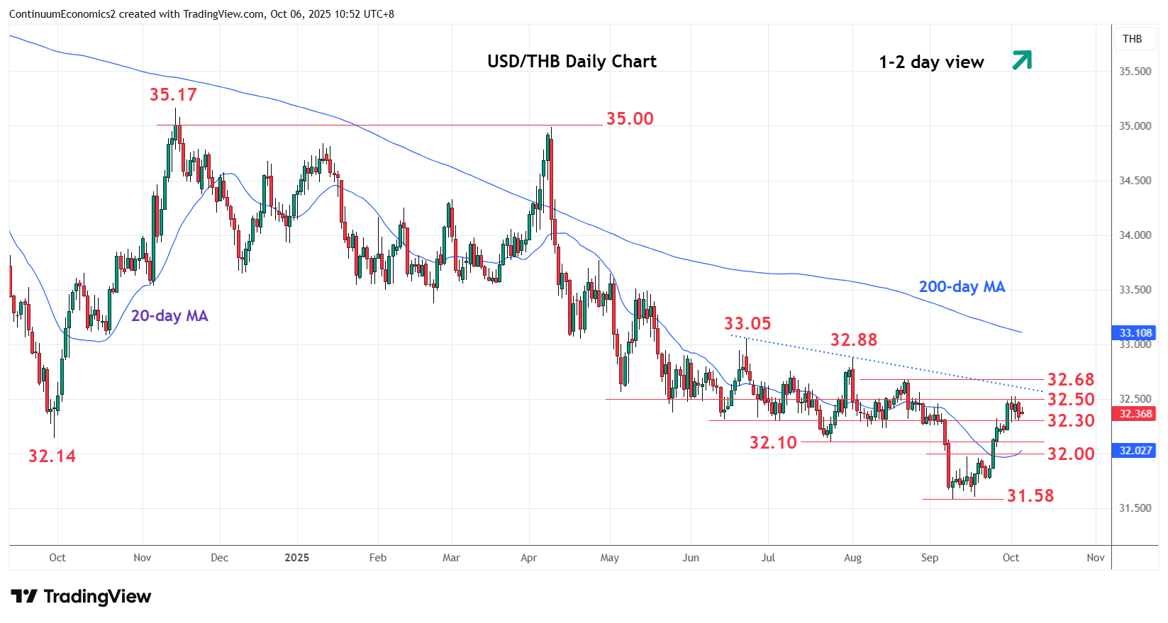 Chart USD/THB Update: Consolidating test of 32.50 resistance