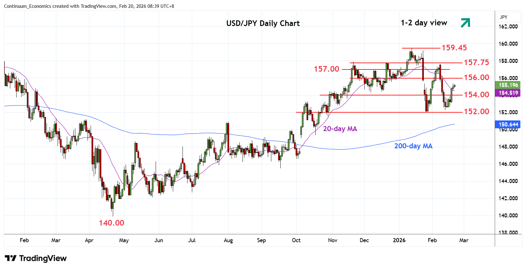 Extending bounce from the 152.27 low as prices retrace sharp losses from the 157.66 high of last week
