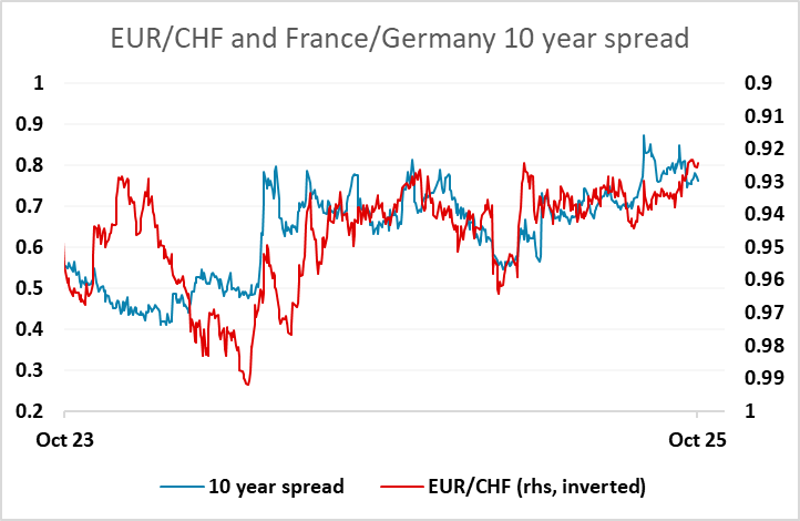 There is also the ECB meeting, but this looks likely to be a damp squib, with little chance of any indication that th ECB is considering moving rates any time soon. It is more likely that the Eurozone data could have an impact, with preliminary Q3 GDP and October CPI data due from Spain and Germany. We see a flat q/q outcome for EZ GDP, with some divergences among the member states. The consensus is a more positive 0.1% gain, with France at 0.2% and Germany at zero. Such an outcome might be seen as positive for EUR/CHF, as evidence of relative strength in France could reduce concerns about French fiscal problems, albeit marginally. EUR/CHF managed a significant bounce on Wednesday, and once again looks well supported at 0.92 unless we see some major risk upset.