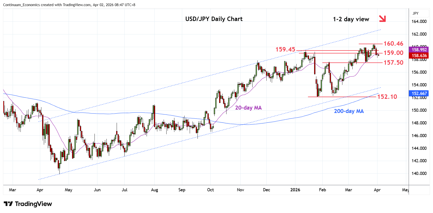 | R3 | 160.46 | ** | 30 Mar YTD high | S2 | 157.50 | ** | 19 Mar low | |