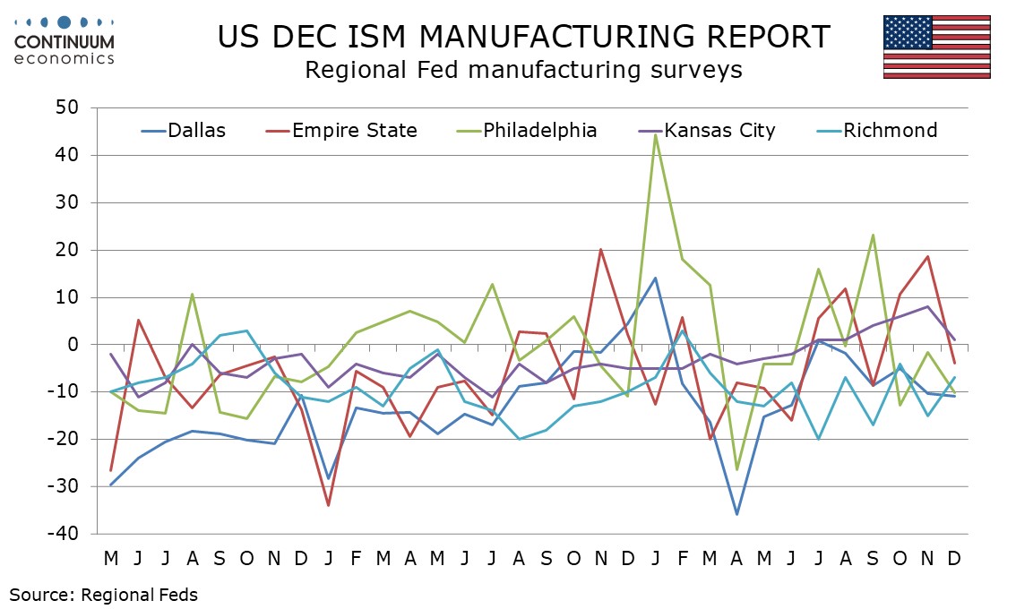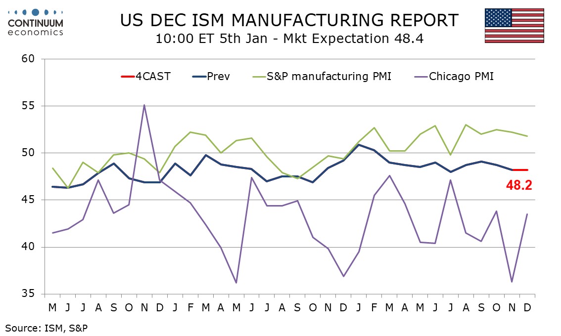 Preview: Due January 5 - U.S. December ISM Manufacturing - Stable slightly short of neutral