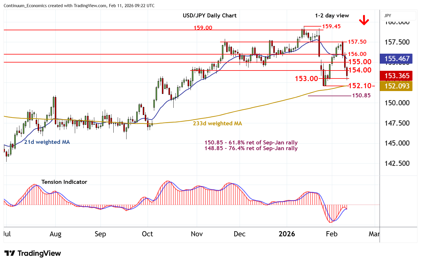 | R3 | 156.00 | * | congestion | S2 | 152.10~ | ** | 27 Jan YTD low | |