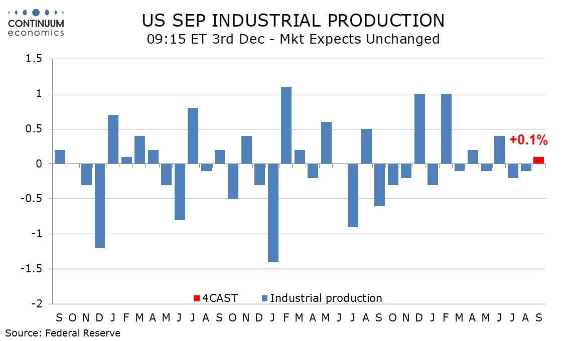 Preview: Due December 3 - U.S. September Industrial Production - Trend marginally positive
