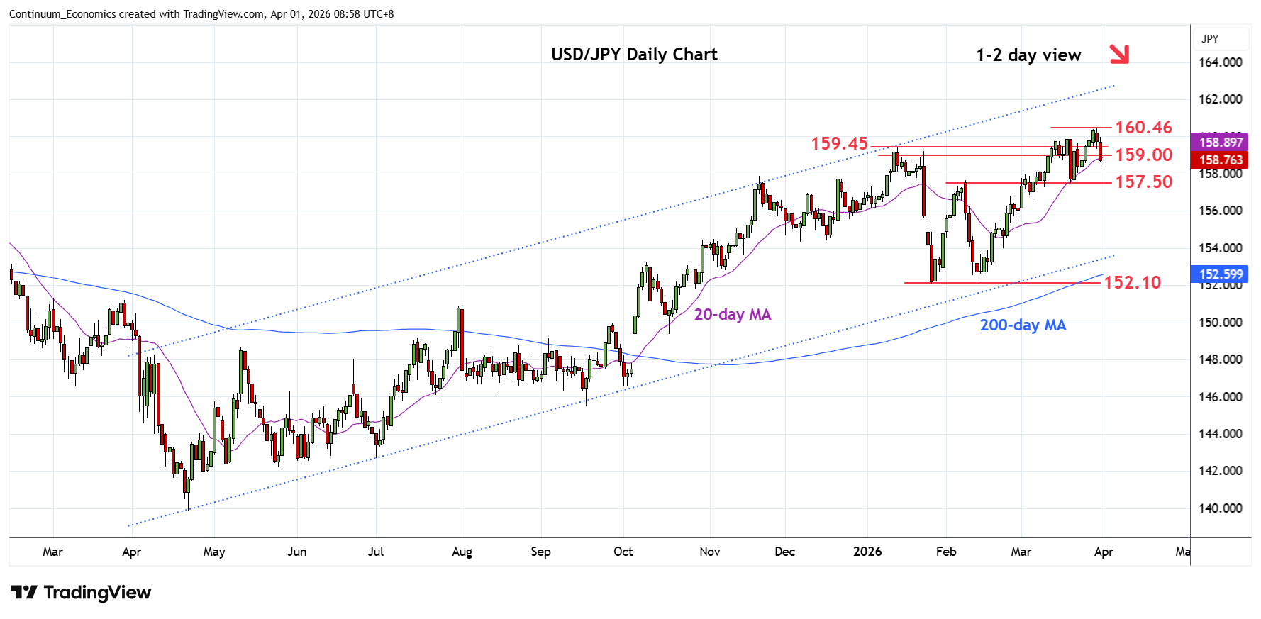 | R3 | 160.46 | ** | 30 Mar YTD high | S2 | 157.50 | ** | 19 Mar low | |