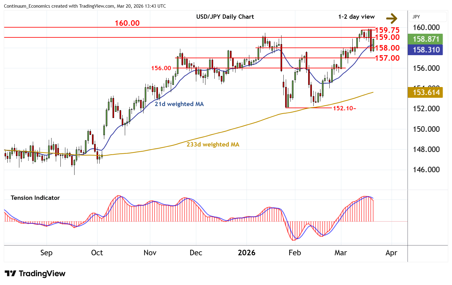 | R2 | 159.75 | ** | 13 Mar YTD high | S3 | 157.00 | congestion | ||