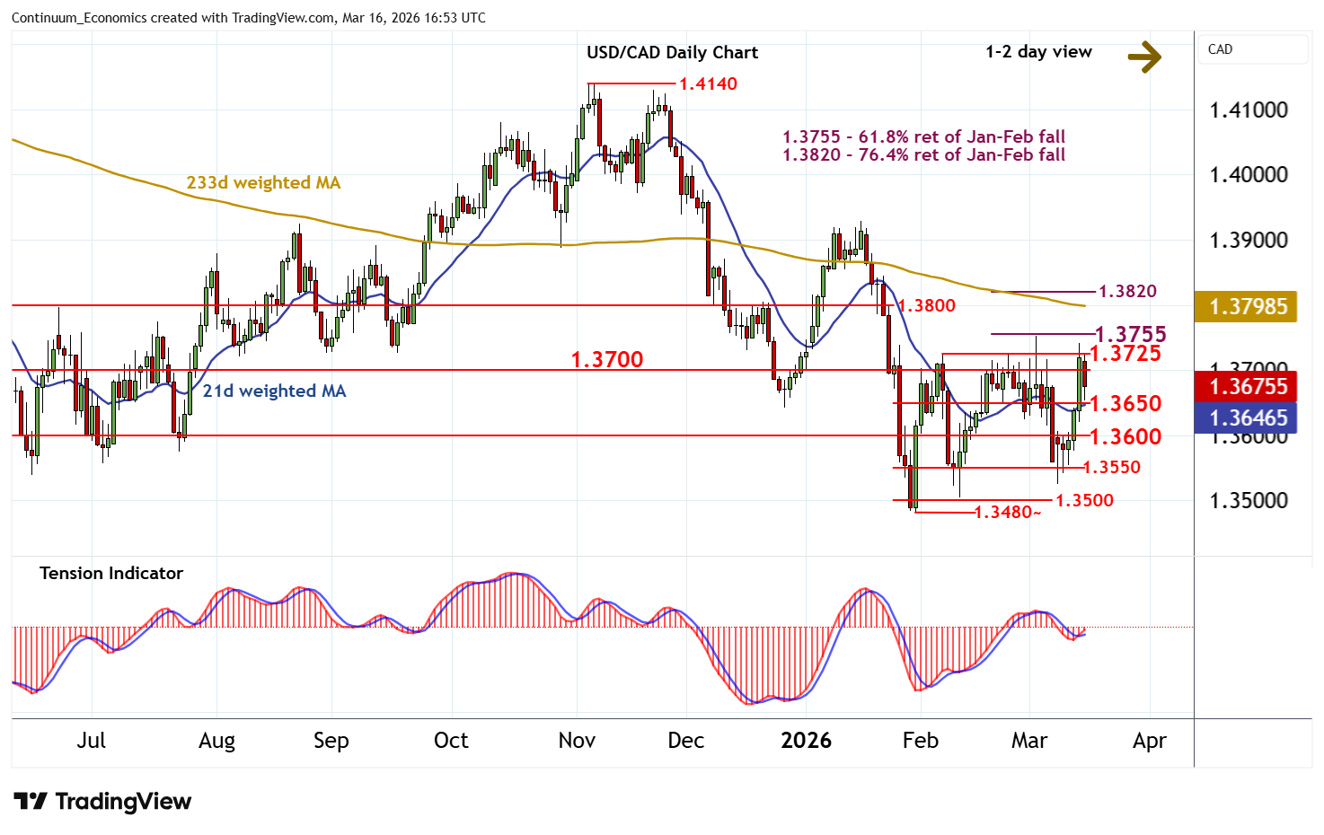 The test of resistance within congestion around 1.3700 and the 1.3725 monthly high of 6 February has given way to a pullback