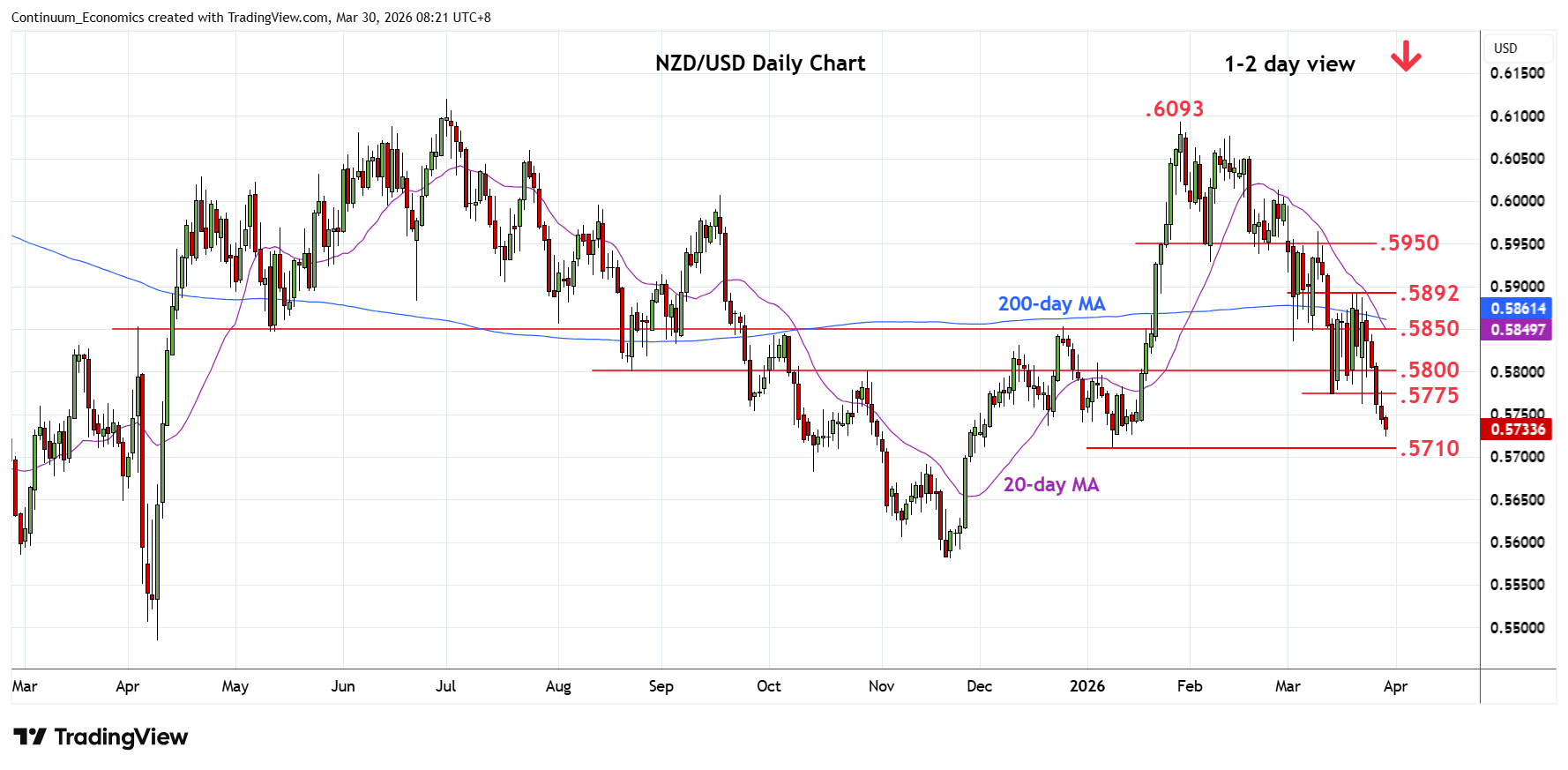 | R4 | .5892 | ** | 19 Mar high | S1 | .5710/00 | ** | 9 Jan YTD low, 76.4% | |
