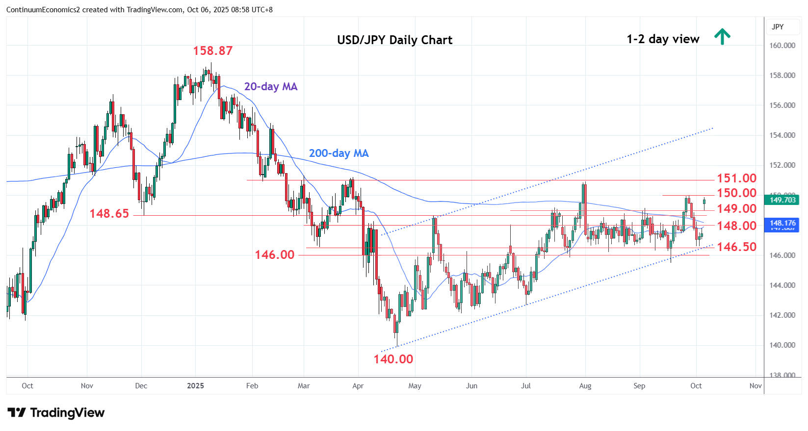 01:00 GMT - Gapped up at the open above the 149.00 level see prices poised for retest of the 150.00 level. Daily and weekly studies have turned positive and suggest scope for break here to extend gains within the bullish channel from the April low. Higher will see scope to retest the August high at 150.92 and the 151.00 level. Beyond this will return focus to the 151.65 61.8% Fibonacci level and the 151.90/95, 2023/2022 year highs. Meanwhile, support at the 149.00/148.65 congestion and December low now expected to underpin.