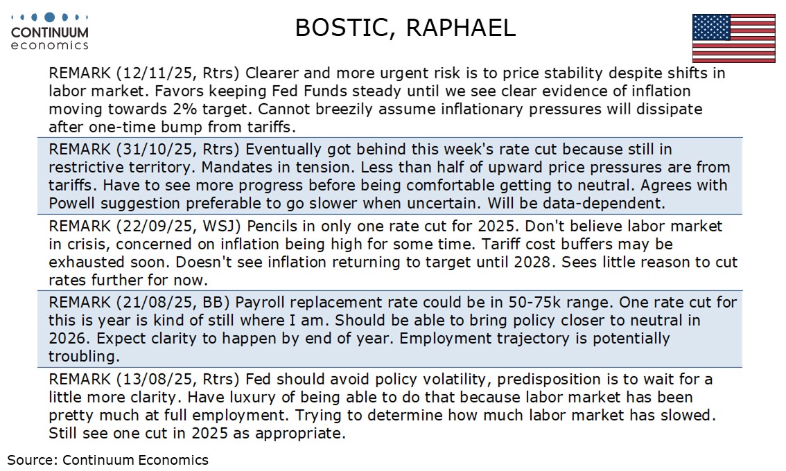 Fed's Bostic has identified himself as one of four non-voters who would have backed a December hold.