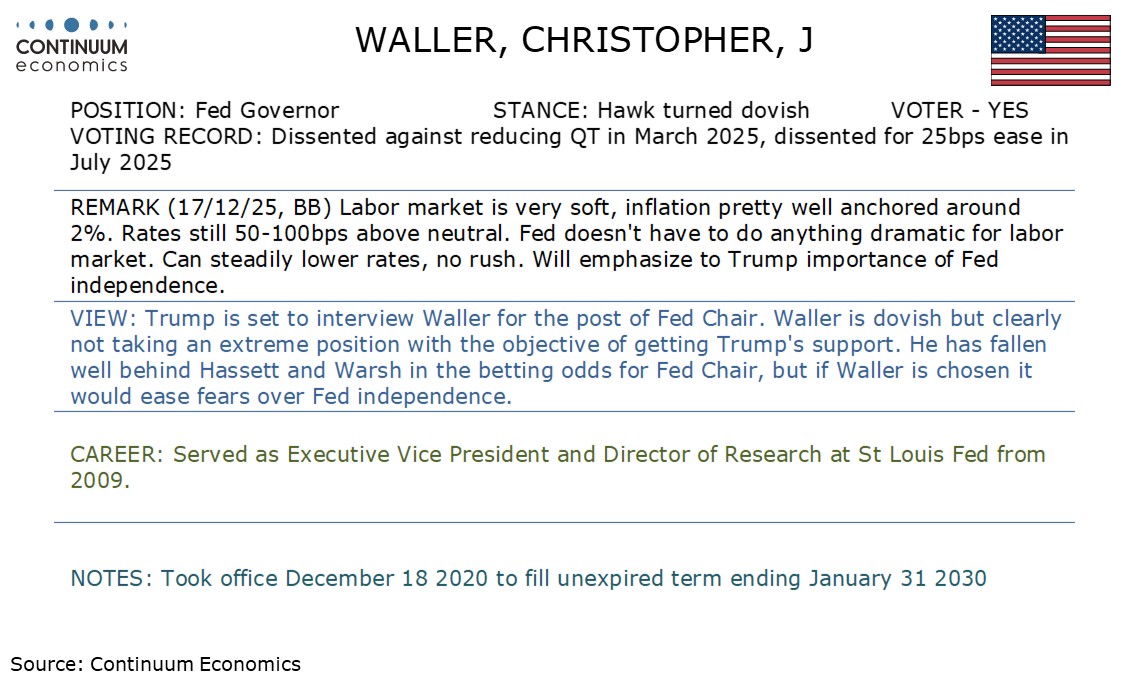 Fed's Waller is dovish but recognises the need to maintain Fed independence.