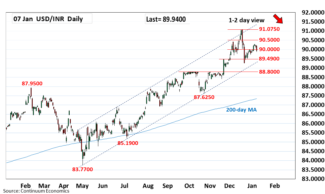 Chart USD/INR Update: Extending pullback from 90.2900 high