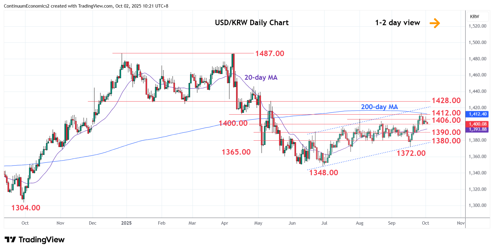 Chart USD/KRW Update: Weighing on the 1400.00 support
